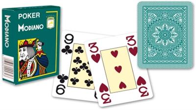 Denna prisvärda och färgglada kortlek är tillverkad av Modiano med absolut högsta kvalite. Modiano Cristallo kortlekarna finns i hela 8 st olika färger och är gjorda av 100% plast. Denna kortlek är grön och har normal pokerstorlek med jumbo index i fyra hörn.